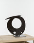 Esta lámpara de sobremesa es una verdadera pieza de arte contemporáneo, que trasciende su función original para convertirse en una escultura luminosa. Su diseño abstracto, en metal negro mate con una sutil textura martillada, presenta formas curvas y líneas dinámicas que juegan con el espacio. La luz, que parece emerger de sus pliegues, crea un efecto dramático y misterioso, realzando la silueta del objeto. Descansa sobre una base cuadrada de metal cromado, aportando un contraste elegante y moderno. Ideal para un estudio, un recibidor o una mesita auxiliar en un salón minimalista, esta lámpara no es solo una fuente de luz, sino un punto focal que invita a la contemplación y a la conversación, infundiendo un aire de vanguardia y sofisticación.