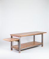 Esta mesa industrial es una excelente opción para ser utilizada como una mesa isla de cocina o como mesa de trabajo.