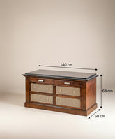 Imagina la calidez y el orden que este mueble auxiliar 'Habana' traerá a tu hogar. Una pieza que fusiona la robustez de la madera oscura con la ligereza visual de la rejilla metálica, creando un equilibrio perfecto entre lo clásico y lo contemporáneo.